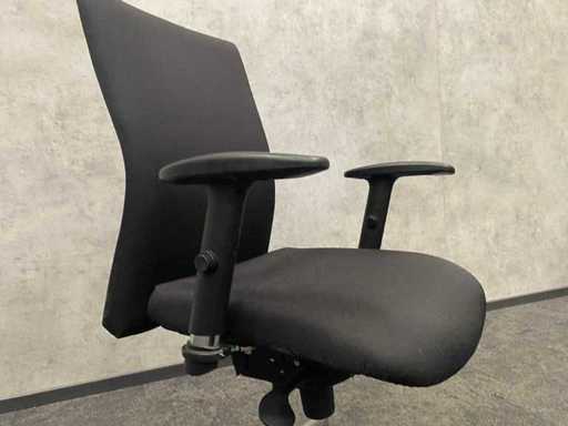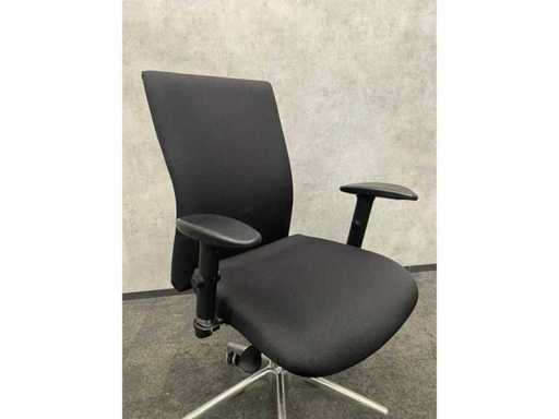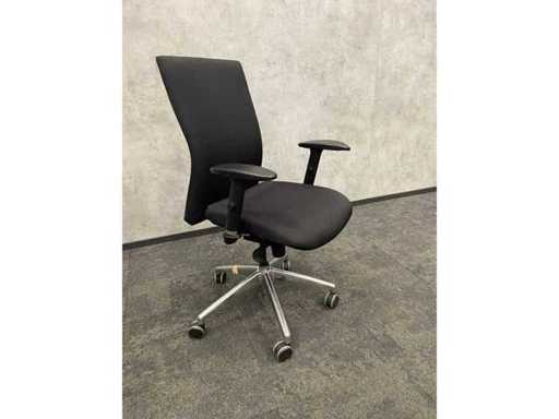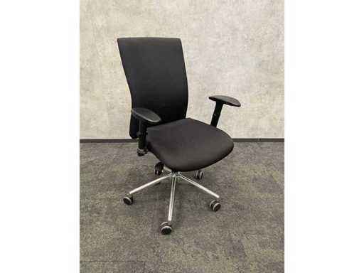 equipped with height-adjustable armrests, seat height and seat depth adjustable, adjustable backrest, black upholstery, chrome 5-star foot cross