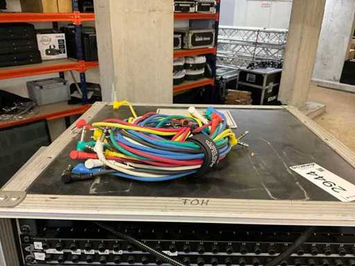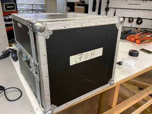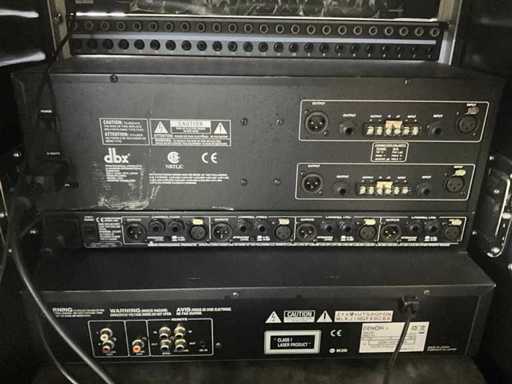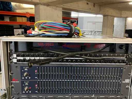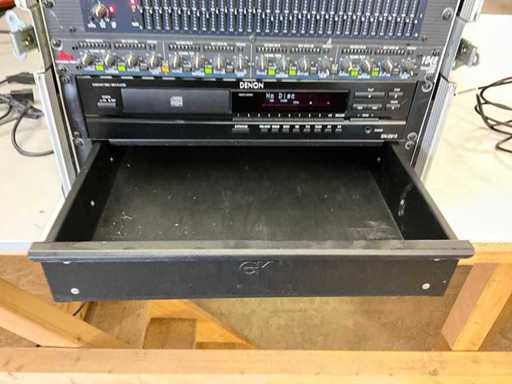 FOH Case dbx Equalizer 1231, dbx 1046 Quad Compressor Limiter, Denon CD y MP3 Player DN C615, Patch Panel, Cajón, Lámparas