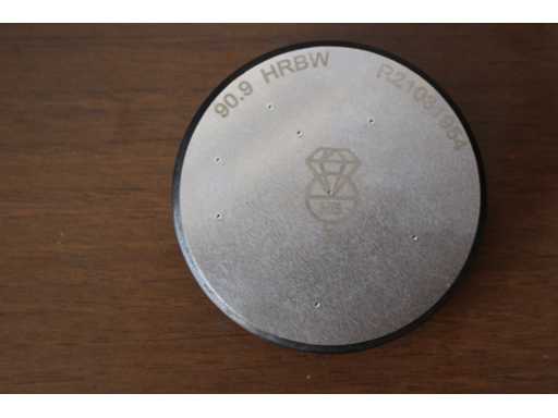 Reading 0.5 HR. Ball and diamond indenter. N.5 setting blocks (3xHRC, HRBW, HRA). Max measurable height when the lead screw protector is added 100 mm, without a lead screw cover 170 mm. Measurement depth 135 mm. Durometer dimensions 185 x 465 x 640 mm. Measuring force: 588,4 N (60 Kgf) /980,7 (100 Kgf) /1471 N (150 Kgf).