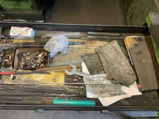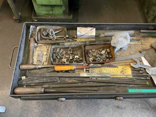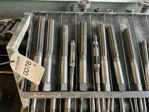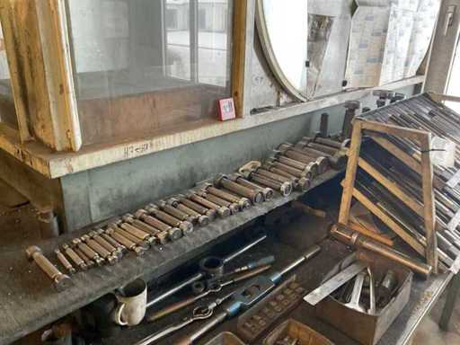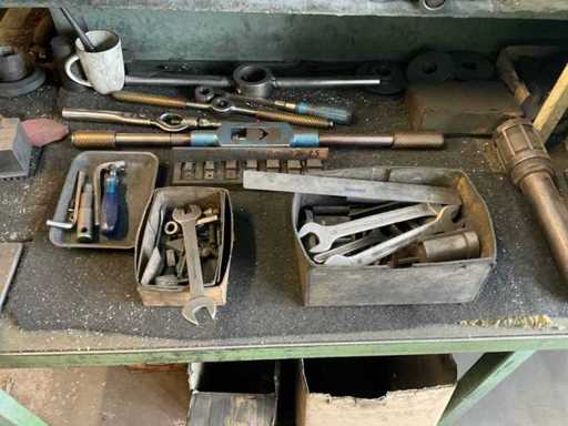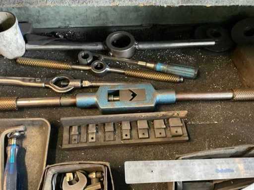 que consiste en, por ejemplo, escariadores, varios diseños y tamaños, mandriles de prueba, varios diseños y tamaños, mandrillos RÖHM de 3 mandíbulas, diámetro aprox. 250, diversas herramientas manuales,