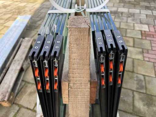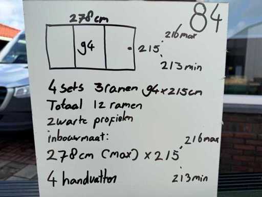 4 sets of 3 sliding windows – 94 cm x 215 cm, clear glass