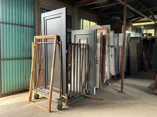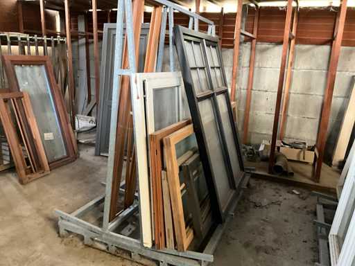 Siendo el volumen total del almacén que incluye aproximadamente 15 puertas diferentes, 80 ventanas diferentes y 1 puerta automatizada, incluidos aproximadamente 15 marcos de ventanas y estanterías, así como un gran lote de herrajes y accesorios para ventanas y puertas. Se desconoce la integridad de las ventanas y puertas, varias dimensiones y diseños.