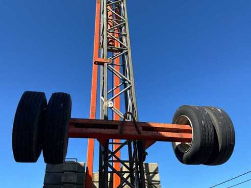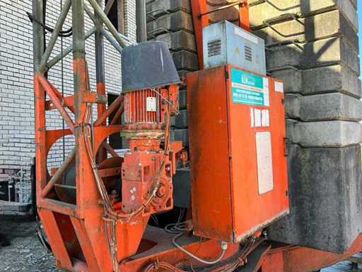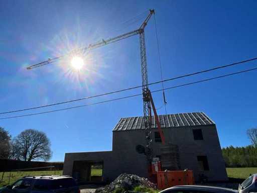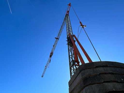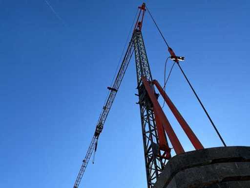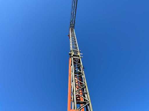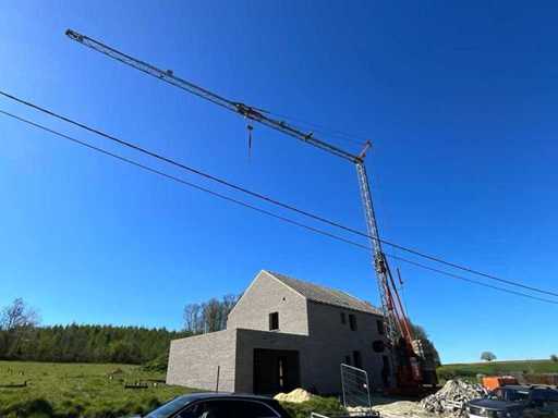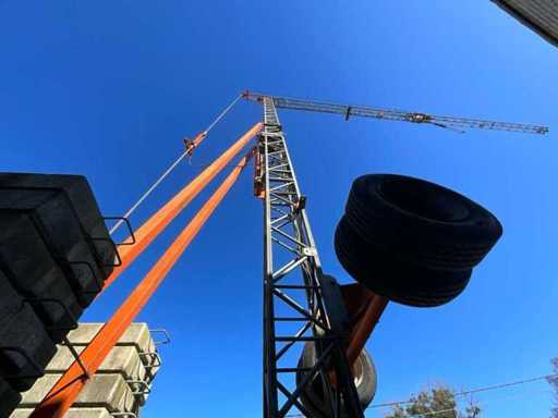 Magnífica grúa de construcción funciona perfectamente con todos sus accesorios visibles en las fotos