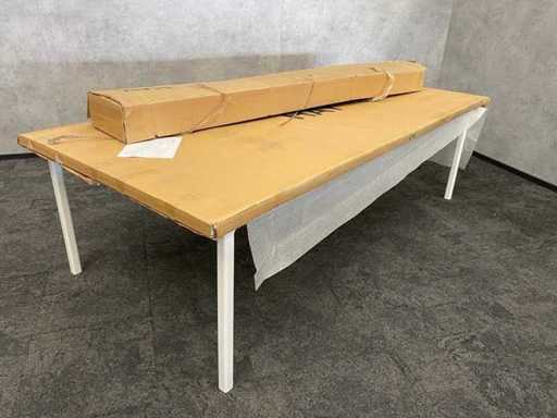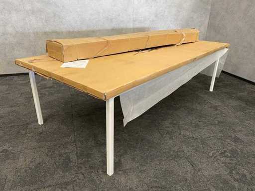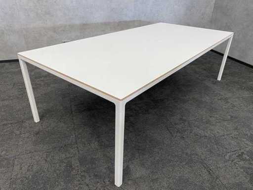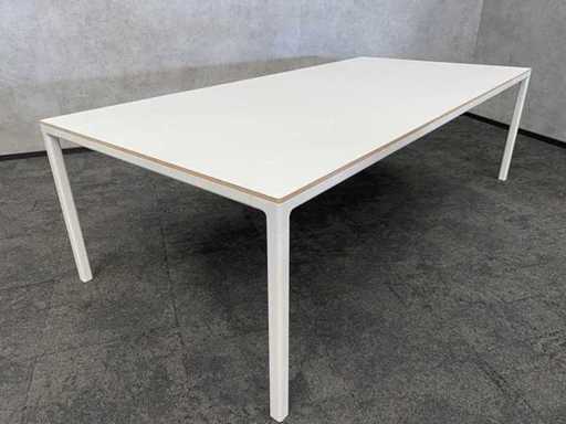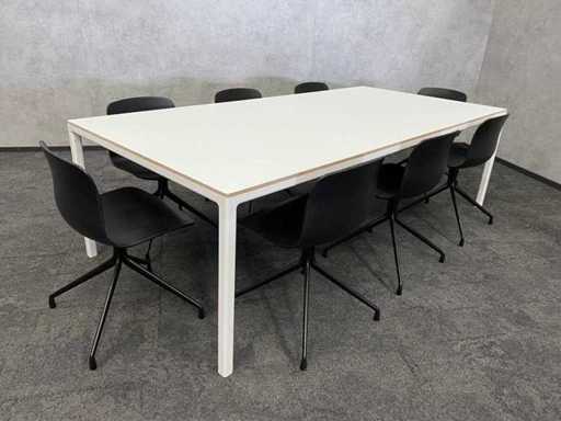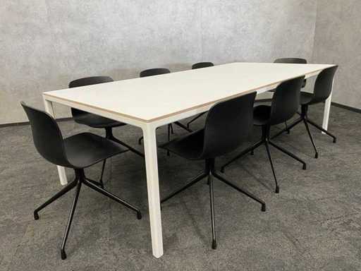 lot consisting of HAY T12 NEW design table with plywood table top and steel 4-legged frame and 8x HAY black swivel bucket seat.