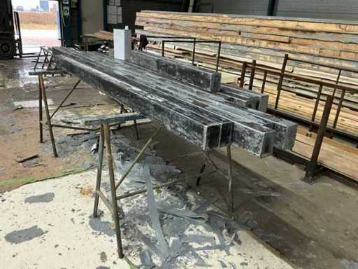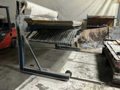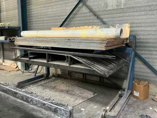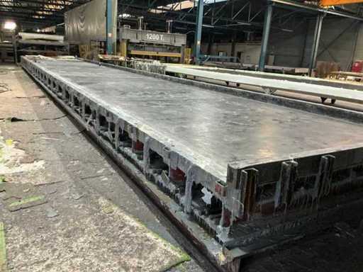 Consisting of heavy steel table top and profile steel base/ including 2 mobile profile steel racks/ including various clamping material and lifting hooks/ estimated weight: + 10 tons