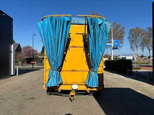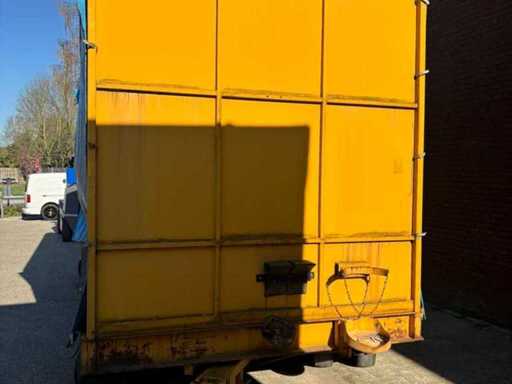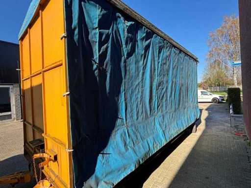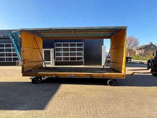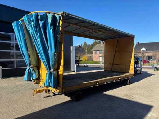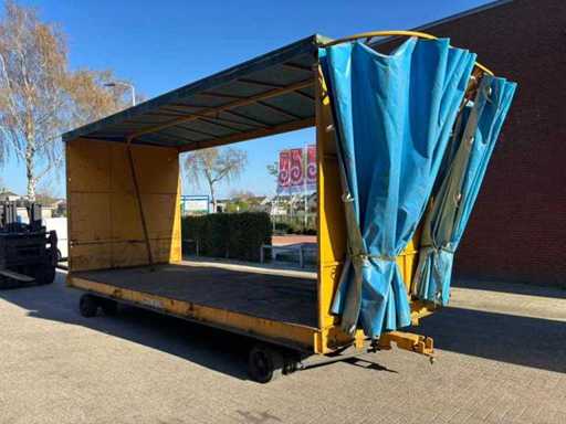 Consists of: interior dimensions: 605x245x250cm LxWxH, dimensions cargo floor without canopy: 615x245cm LxW, transport dimensions:735x245x345cm LxWxH, cargo floor height: 65cm, load capacity: 16000kg, full rubber wheels, 2 axles steered, solidly built, curtainsiders, well functioning, canopy fully dismountable, cart is then completely flat, 2 drawbars present.