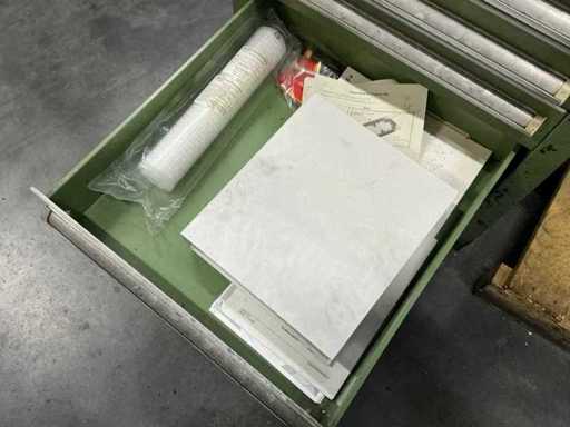 Incluyendo 2 armarios de cajones submontados con 6 o 7 cajones y prensa 125