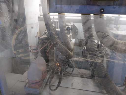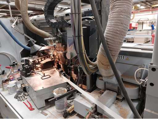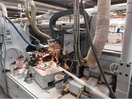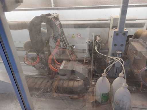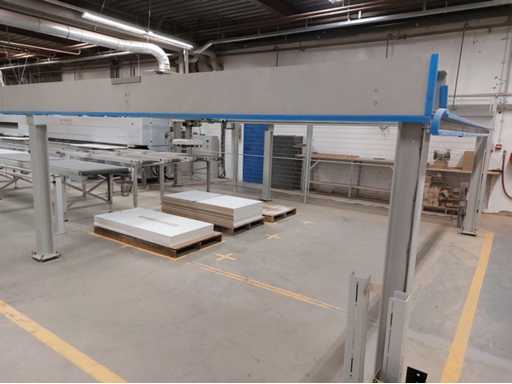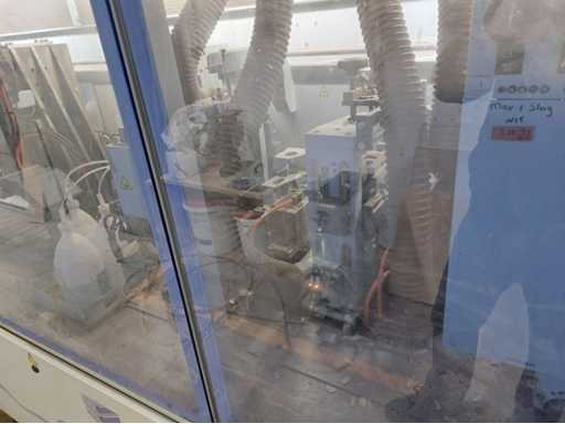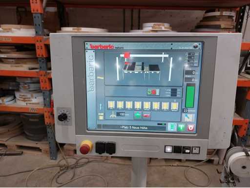 Equipped with: Lasertec and PU gluing, portal return BarbaricWorkpiece transport device: