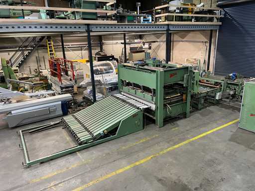 Complete line with loading system, gluing machine, destacker and high-frequency cabinet.