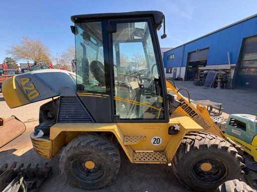 Kramer Allrad 420 con motor diésel Deutz (BF4L1011FT, 42 kW). Máquina compacta y robusta con cabina y tracción total.
