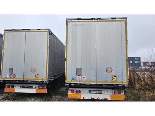 Remolque cortina de 3 ejes, laterales correderos de lona, puertas dobles traseras, acoplamiento kingpin, patas de aterrizaje, carrocería EN 12642-XL, suspensión neumática, sistema de frenos EBS