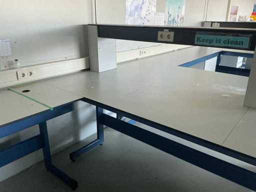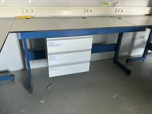 Consisting of work setup LxWxH:3650x1610x1700mm. equipped with electricity, drawer units, and stainless steel sink LxWxH: 700x1400x1000mm. Single desk: 740x1910x950mm