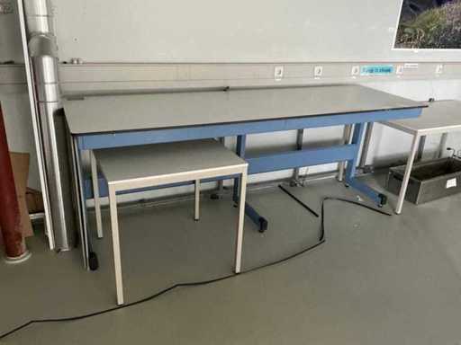 Consisting of work setup LxWxH:3650x1610x1700mm. Equipped with electricity, drawer units. 3x desk and step stool