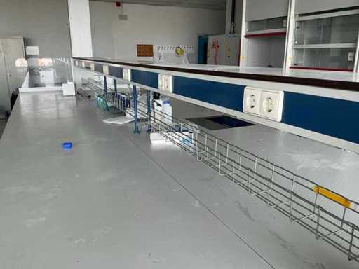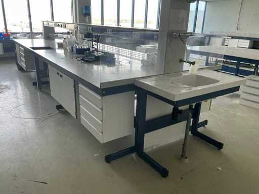 Equipped with, among other things: sink, drawer units, power connections. Items on work island not included