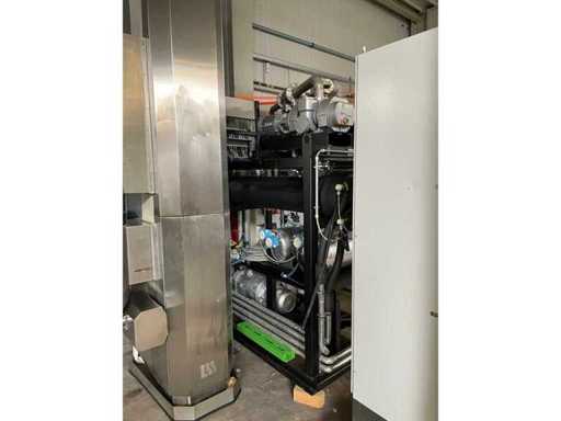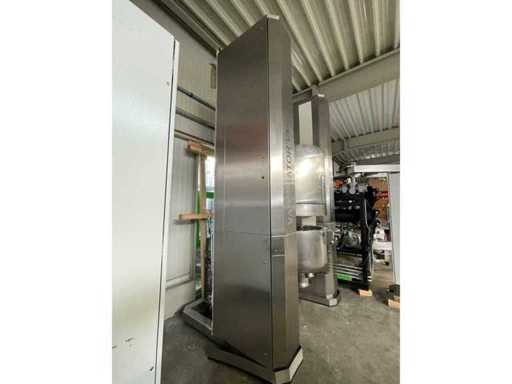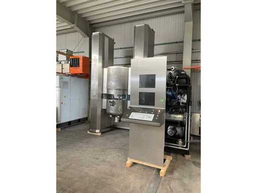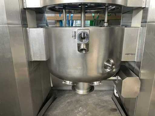 Bohle Vagumator® VMA 300 V Mezclador/granulador Pharma de 300 litros Esta planta está diseñada para la mezcla y dispersión intensiva y eficiente de gránulos húmedos y secado al vacío posterior. La máquina puede manejar lotes de entre 40 y 130 kg. El VMA es adecuado para una amplia variedad de aplicaciones farmacéuticas de granulación y funciona con tres etapas de producción en un solo cuenco: 1. Mezcla 2. Granulación húmeda de alta cizalladura 3. Secado al vacío Actualmente, esta planta está equipada con un sistema de alta resistencia herramienta de mezcla para obtener la granulación óptima Actuación. Además, el helicóptero evita la aglomeración y – si el producto es mojado – ayuda a formar uniformes gránulos del tamaño de los demás. Hay unidades Top Drive para evitar el producto desde adherirse hasta los sellos de la mezcla Asamblea. Esto garantiza ciclos de vida más largos de Los sellos. La salida de descarga en el centro permite Vaciado controlado del producto y completo Vaciar el agua después de limpiar. La construcción de la planta permite una rapidez y fácil de limpiar. En la instalación anterior, la producción El área estaba separada de la ingeniería zona. En 2010, se instaló un refrigerador tipo HYFRA VWK 70/1-S para el condensador de vacío. Este enfriador tiene una capacidad de refrigeración de 6,6 kW para 32° C. En 2015 se reemplazaron los componentes de control y mejorado según los estándares reales. Todos los controles del operador están ubicados en un panel separado con una unidad de visualización visual. Esta planta se ofrece completa con dos unidades de tipo único Controladores avanzados de temperatura N1-90-18-80 que eran Adaptado en 2015. Datos técnicos: para temperaturas de agua de máximo 90° C Capacidad de calefacción: 18 kW Capacidad de refrigeración: 80 kW La planta se instaló previamente en una planta de producción farmacéutica alemana Recomendado instalar, conectar y probar por OEM antes de usar.