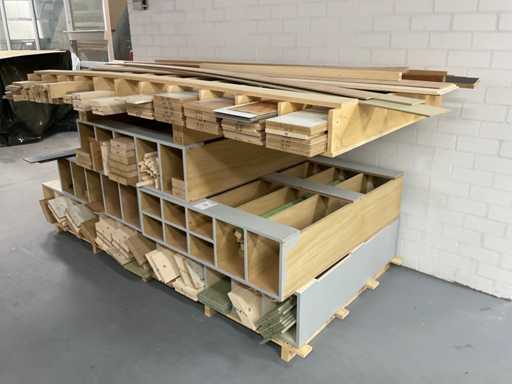 En diferentes tamaños, en y con armarios compartimentos de madera, dimensiones totales aproximadas 2500x1250x1250mm
