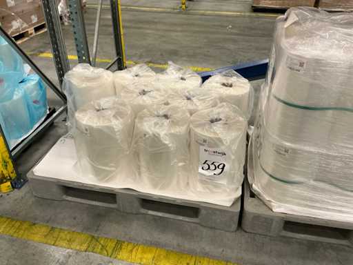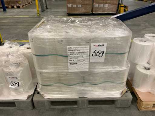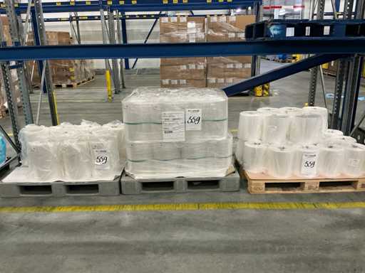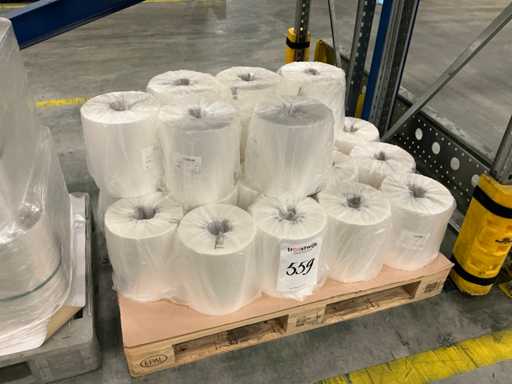380 mm, 52 my, 30 rollos, incluyendo varios rollos de película, en total en 4 palets