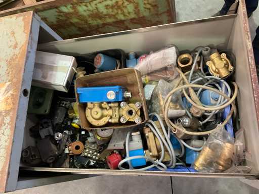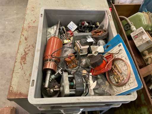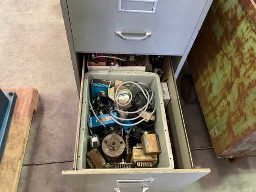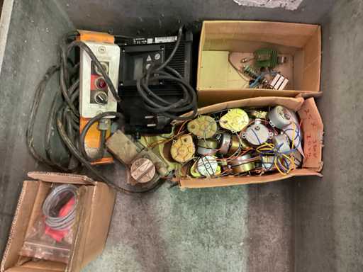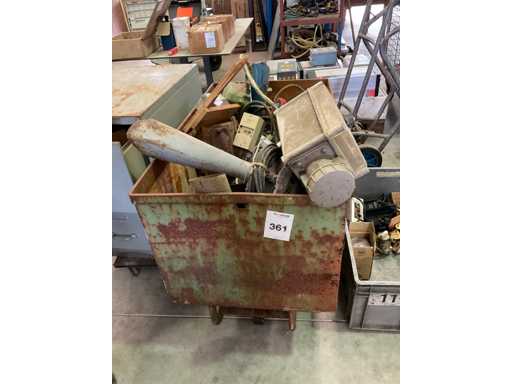 cómoda con contenido de equipo eléctrico; carro de acero con motores de contenido y transformadores; caja