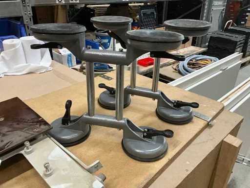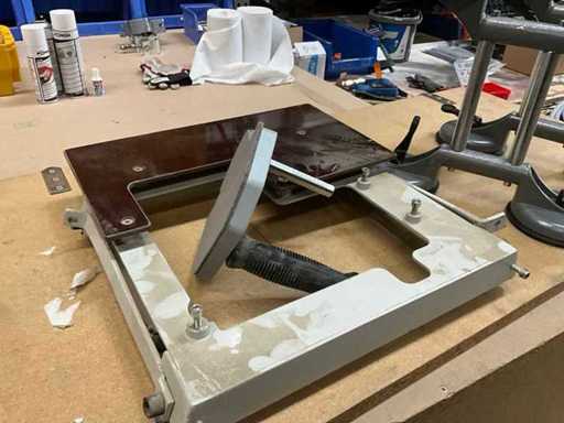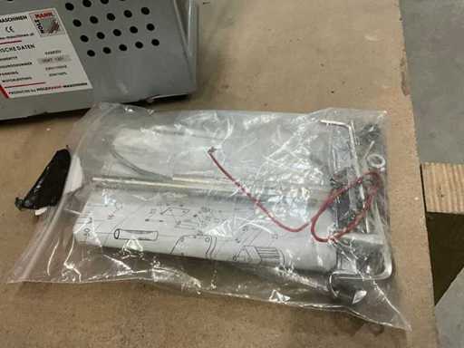 Máquina manual de pegamento Lanten Holzmann KAM 55V que incluye herramientas, mesa de trabajo, aspiradoras en caja metálica