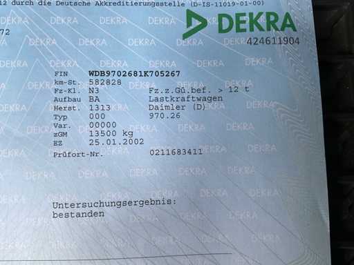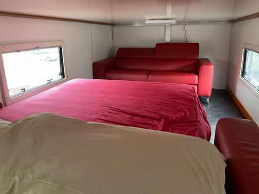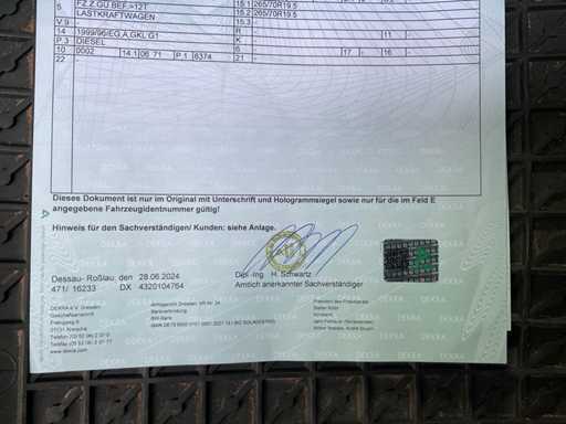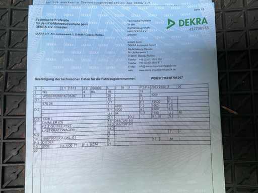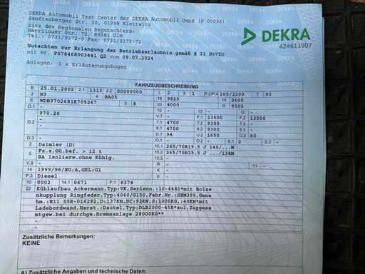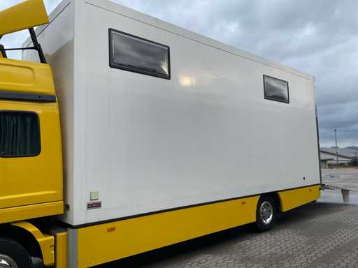 Carcería: Caja de refrigeración con plataforma de elevación, carrocería refrigerada Ackermann, tipo: VK, números de serie. 10-4480, muelle de anillo de acoplamiento de cerrojo, Tipo: 4040/G150 Incluyendo: cocina, sofá-cama, garaje trasero para coches de carreras, elevador trasero, inspección técnica realizada el 07/09/2024, con asientos calefactados, aire acondicionado, sin radio