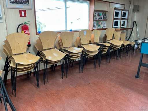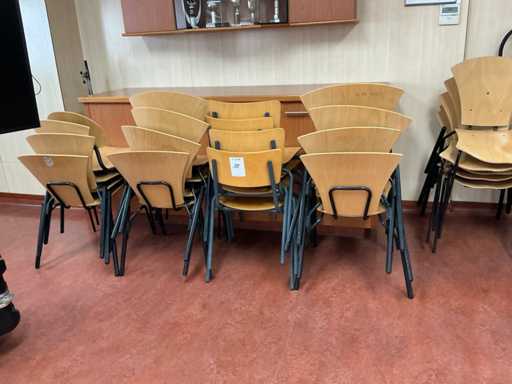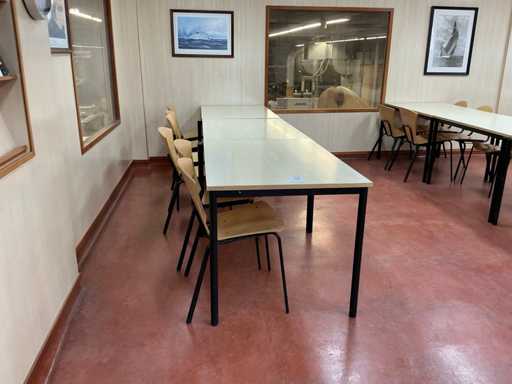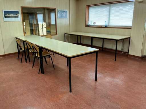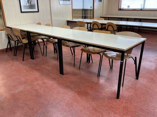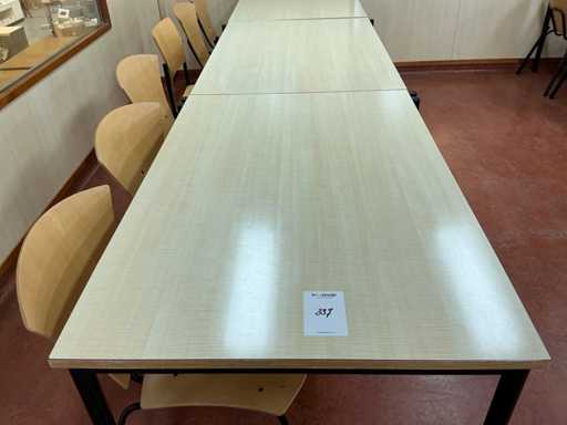 De los cuales 3x tabla; tamaño superior 298x80cm; con 65 sillas de comedor