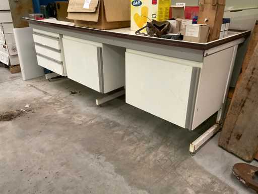 laboratorio con 2 armarios bajos y 3 cajones; sin el contenido