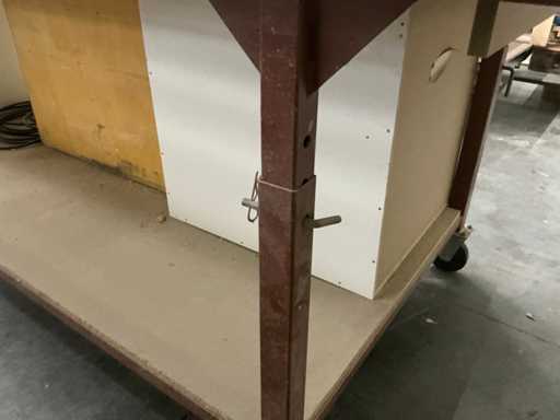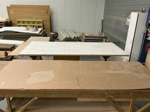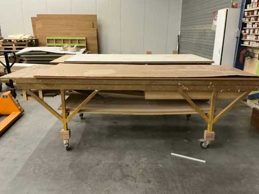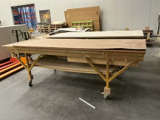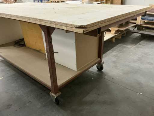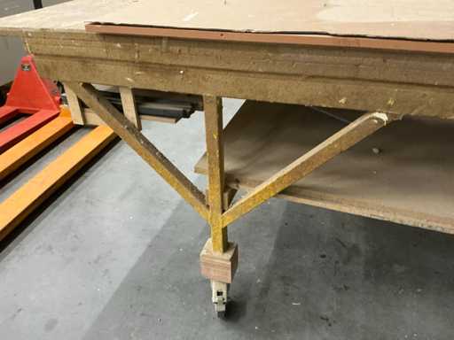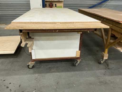 With underlay; each table with 2x castors with brakes; 1 table adjustable in height