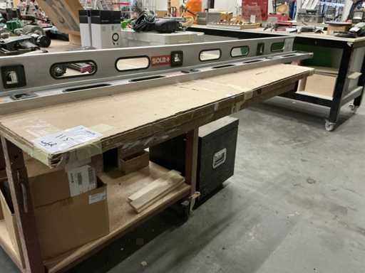 Wooden top; steel lower frame; items on the table are not part of the lot