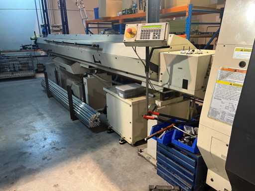 Máquina inspeccionada por Okuma en Diciembre 2025, sin alarmas activas. Incluye: Alimentador de Barra FMB Turbo 5-42 XT 2001