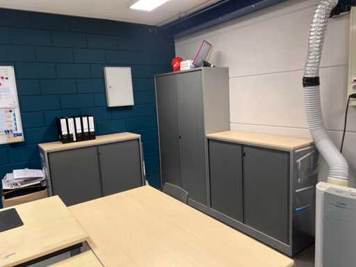 Compuesto por: 8 escritorios, 7 armarios blindados (varios tamaños)