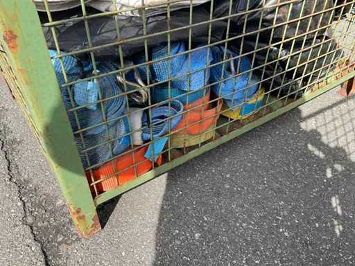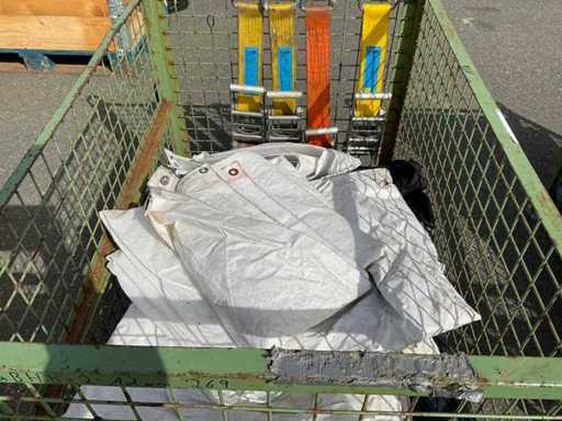 Contenido: lonas, fundas, así como varias correas de ancamiento y trinquetes metálicos para asegurar la carga