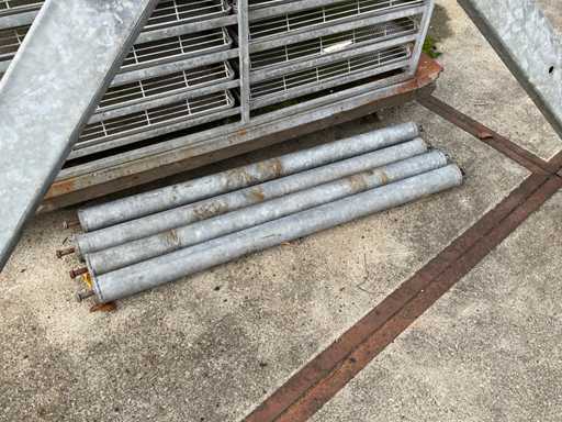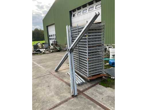 acero galvanizado; 2 sostenidos tenues. 313x313 cm; y 4 tubos de conexión de acero; longitud 112 cm; Desmontado