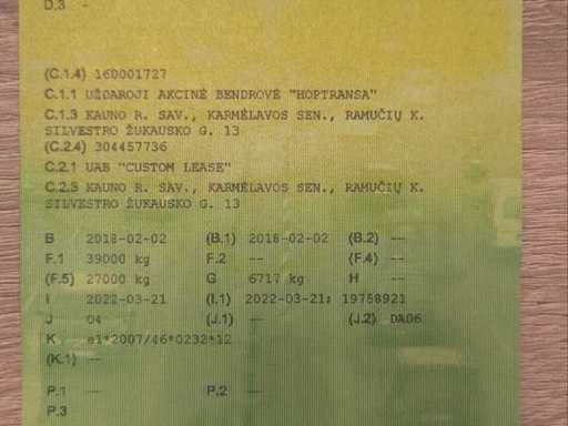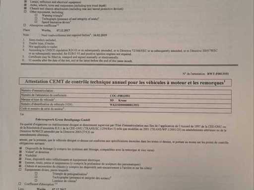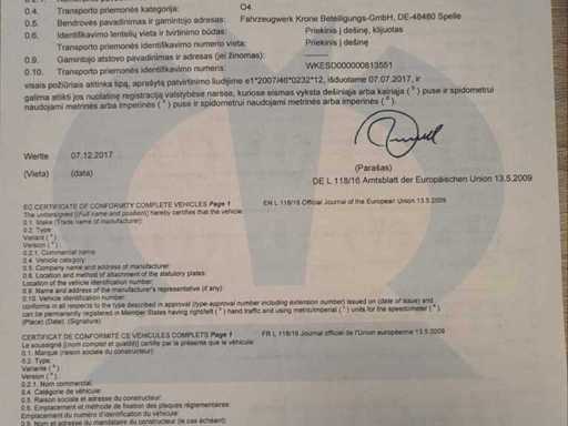 Krone SD cortina semirremolque de 2018 en estado limpio y listo para usar. Equipado con 3 ejes con suspensión neumática, cortinas, techo solar y puertas traseras dobles. Documentos europeos (Estonia) disponibles, incluyendo la aprobación de tipo y el certificado ECMT. El vehículo debe ser importado por el comprador en el país de destino. Peso máximo permitido de 39.000 kg. Ideal para transporte internacional. Signos normales de desgaste apropiados a la edad y uso - especificaciones: lona deslizante izquierda y derecha, techo corredero, aparadores de aluminio, suelo de madera adecuado para transporte de paletes, puertas traseras (puertas dobles), sistema de frenos ABS / EBS, frenos de tambor, eje elevador, soporte para rueda de repuesto, parachoques trasero según la norma de la UE, pegatinas de velocidad 60/70/80 km/h, certificado ECMT disponible, documento europeo de aprobación de tipo, adecuado para paletes de 33 euros