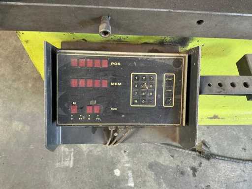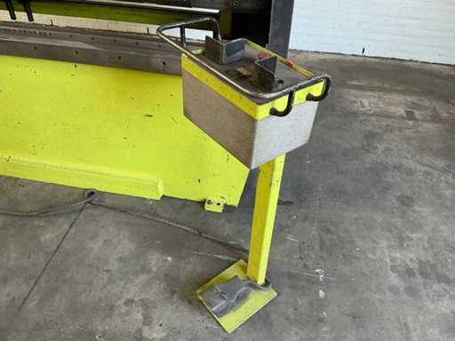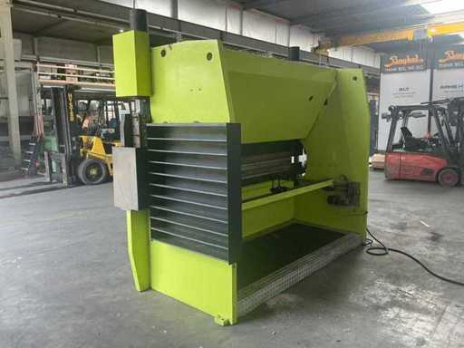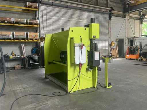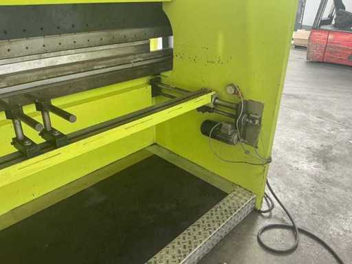 Conventional press brake with electrically adjustable backgauge with control unit. Machine is also adjustable in height; constantly goes up automatically. It is functional. Including upper blades and lower die, as shown.