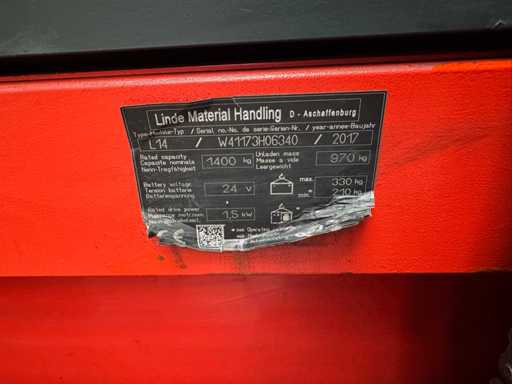 Servicio 2017 + UVV 12/2026 Linde L14 a escala 1,400kg Plataforma Apiladora Hormiga Apiladora