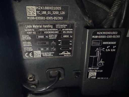 Servicio 2020 + UVV 04/2027 Linde H30T 3.000kg StVZO 3.+4. Válvula 170cm Horquilla Ajustador de horquilla Carretilla elevadora de gas 8.986 horas