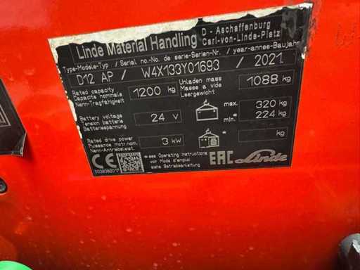 Servicio 2021 + UVV 03/2027 Linde D12AP 1,200 kg Dúplex Plataforma de 242 cm Plataforma Hormiga + 2,159 horas