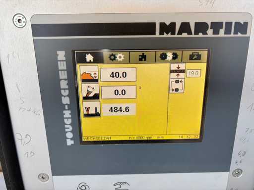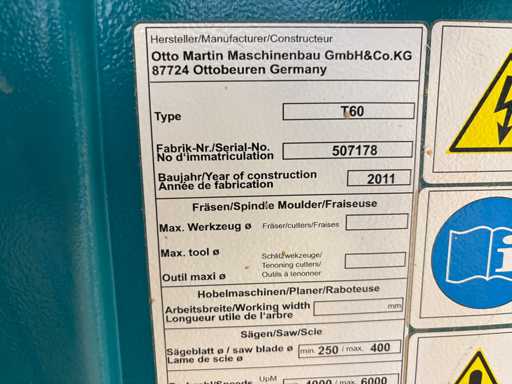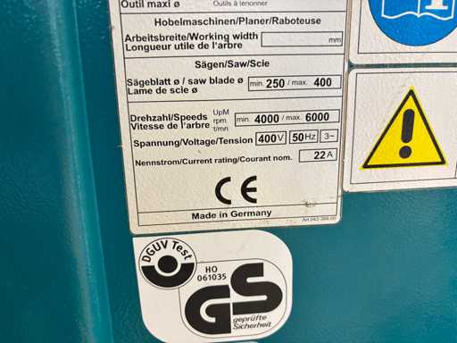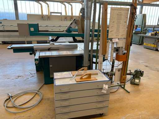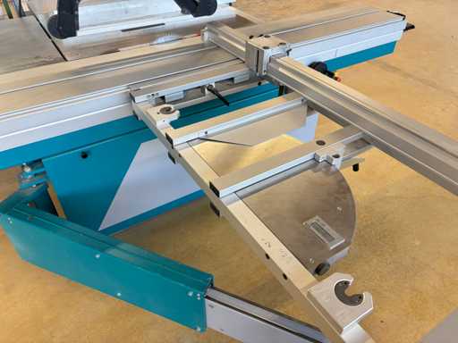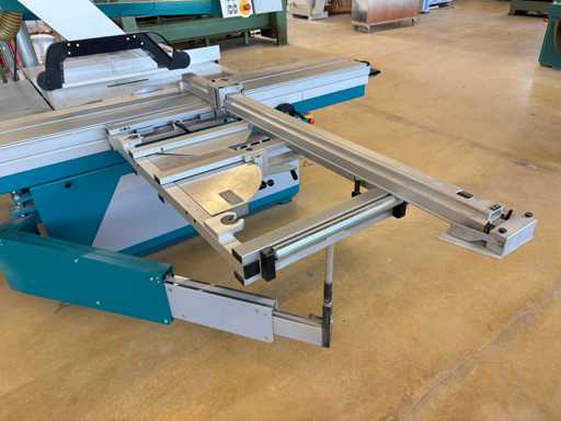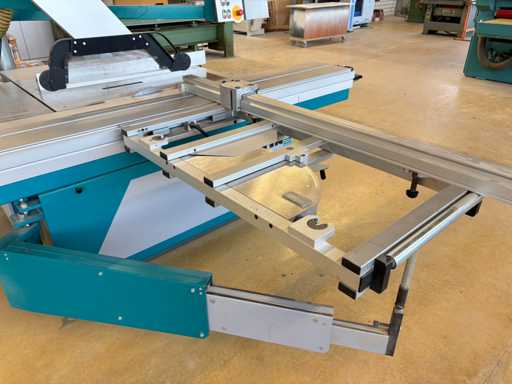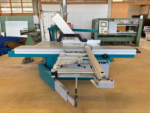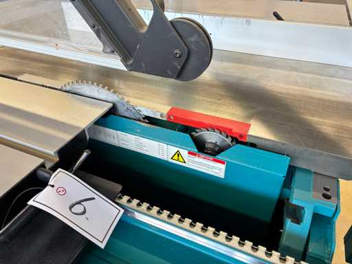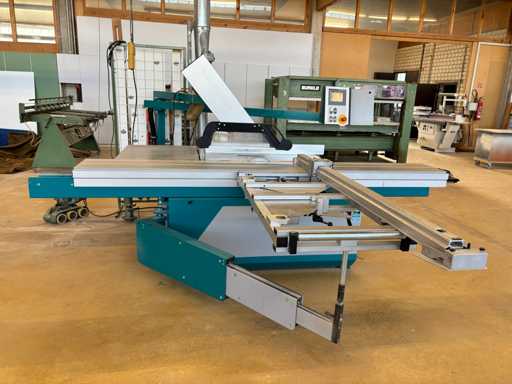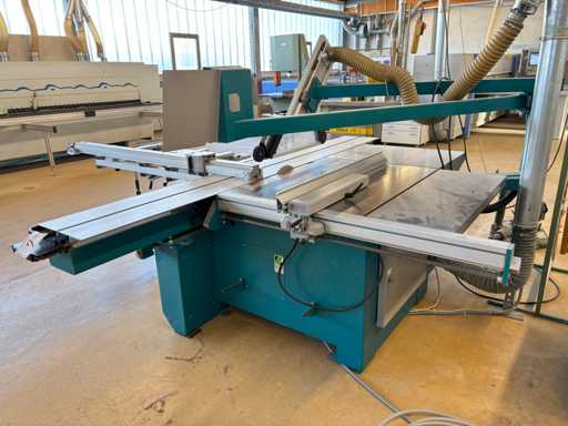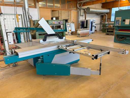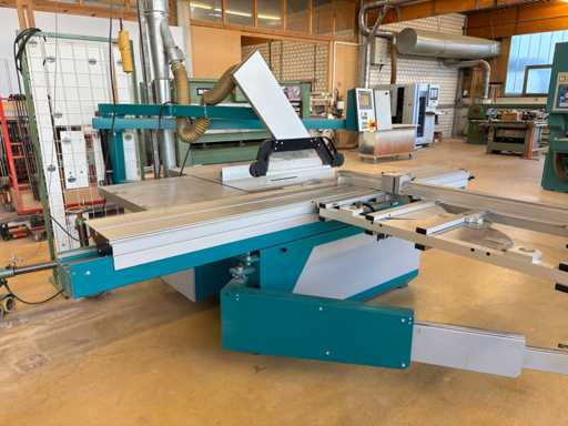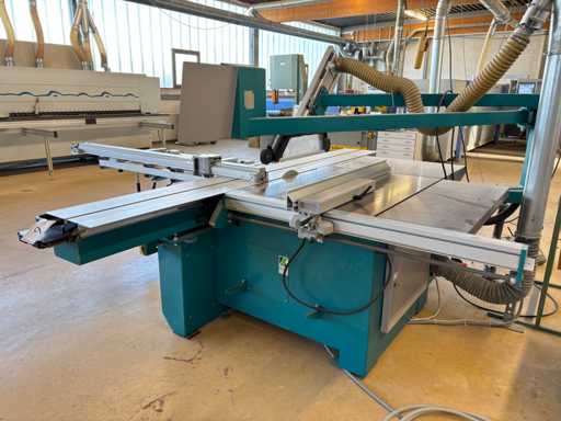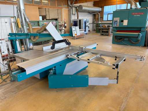 Máquina nº 507178, motor 5,5 kW, velocidad aprox. 4000/4800/6000 rpm, longitud de corte aprox. 3000 mm, ancho de corte de corte de la guía de corte aprox. 1200 mm y ajustable mediante volante manual, diámetro máximo de la hoja de sierra aprox. 400 mm, altura de la unidad de sierra y ajuste eléctrico del giro (El artículo está en condiciones existentes y sin probar). Los costes de desmontaje y carga son vinculantes y el artículo se vende sin contenido ni material).