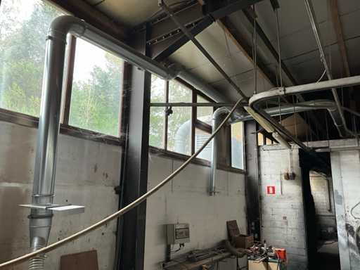 Equipado con extractor de aire, que incluye aproximadamente 15 metros lineales de tubos galvanizados, que cuelgan a una altura de aproximadamente 500 cm