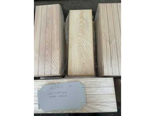 Paneles macizos de madera de fresno, en estado nuevo, la cantidad total de este material es de 16,32 m2.