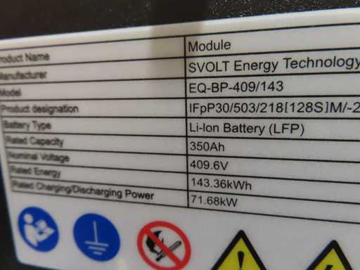 71kW, 143kWh, 409V, tamaño de batería (medido sin embalaje): aprox. 211x112x24 cm.