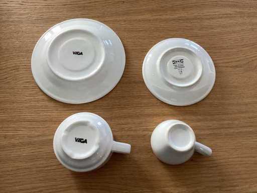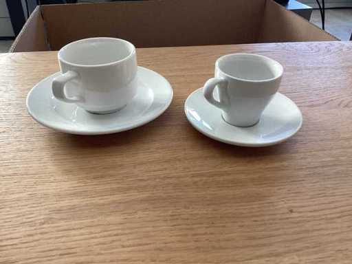 Taza y plato 16 veces, taza y platillo de espresso 8 veces, 10 tazas adicionales de espresso, blanca, mezcla con caja