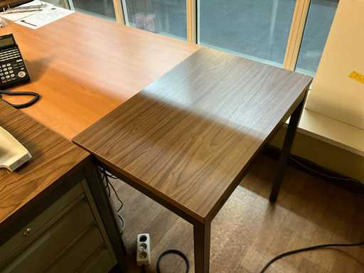 2 escritorios de madera chapados con base de metal aprox. 50 x 75 cm,