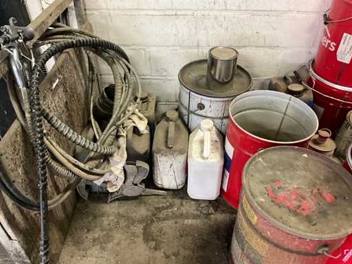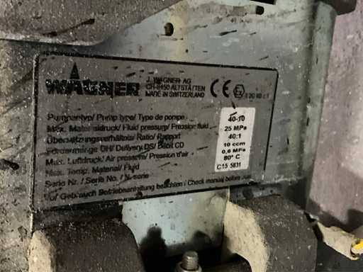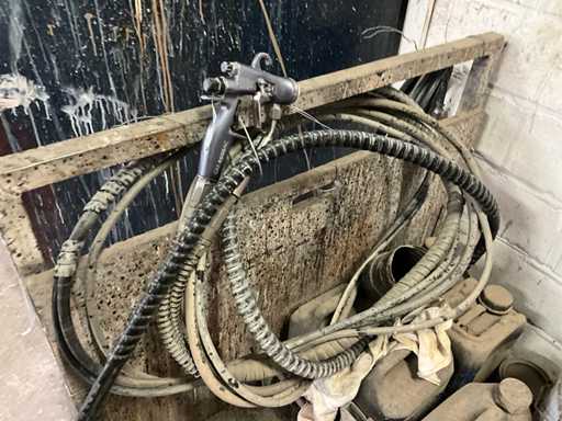 Incluye bomba de pulverización Wagner con manguera y pistola, 2 carros móviles con frascos de vef, mangueras, vasos mezcladores,