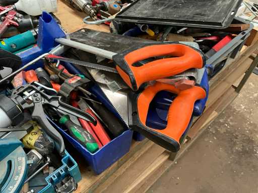 Incluye sierras, martillos, destornilladores, tornillos allen, taladros, escuadra