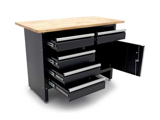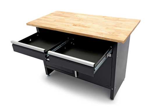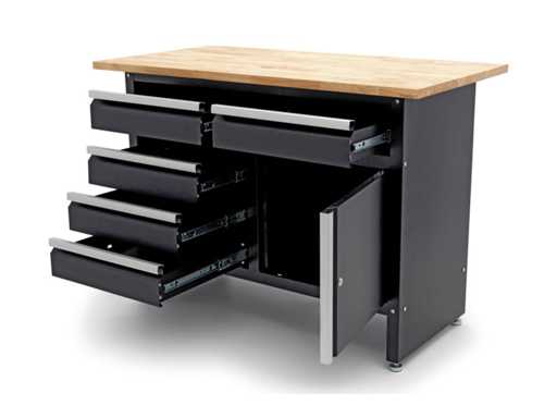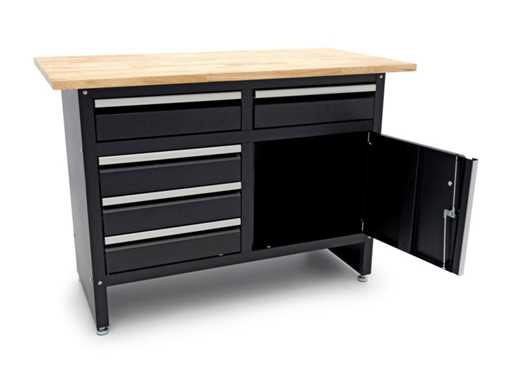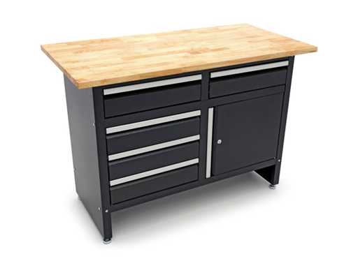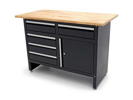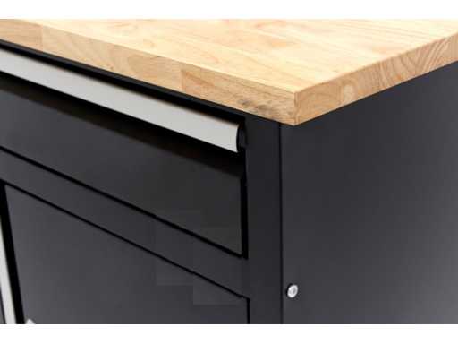 Workbench with 5 drawers, 1 door and solid wood worktop