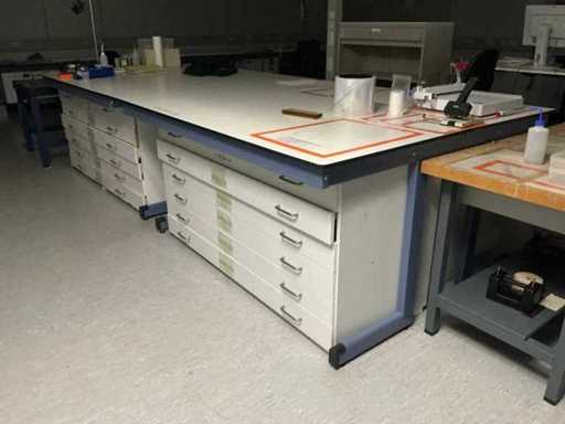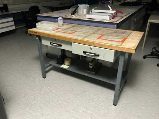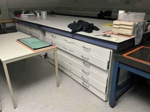 Equipped with drawer cabinets, (LxWxH:4000x1700x950mm). Items on the table not included. Includes work table. Equipped with 2 drawers and wooden worktop