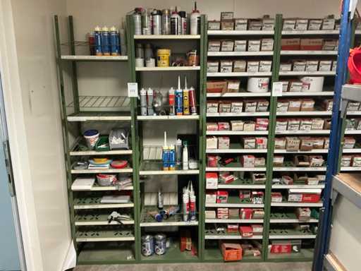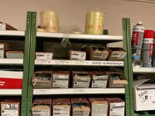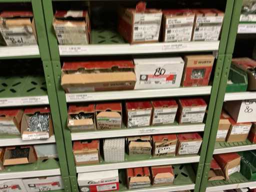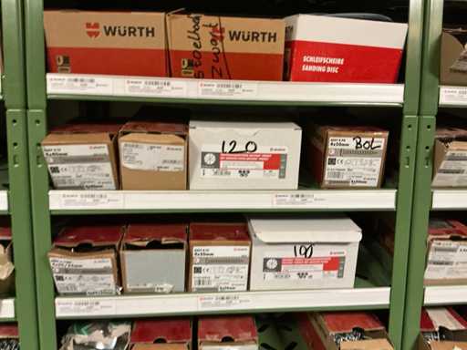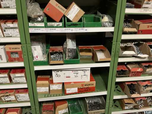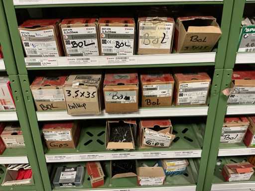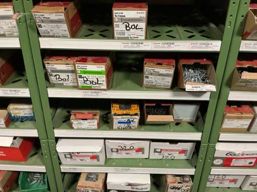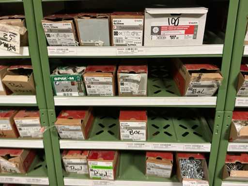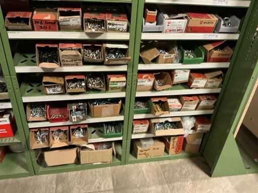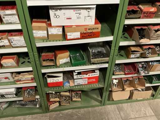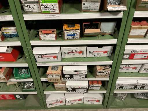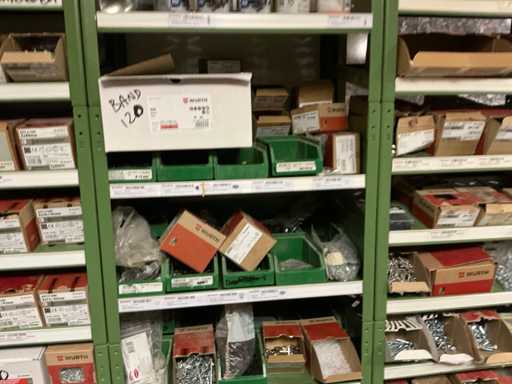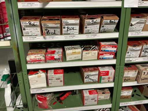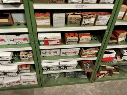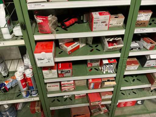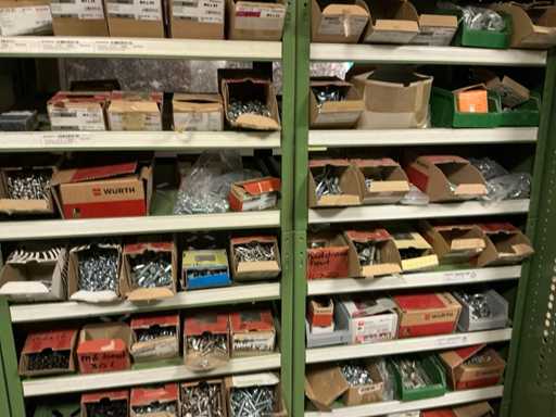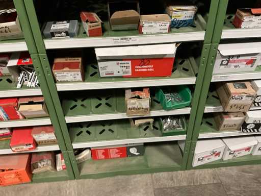Various screws, plugs, bolts and sanding sheets. Content 9 sections of grab stocking; without scaffolding