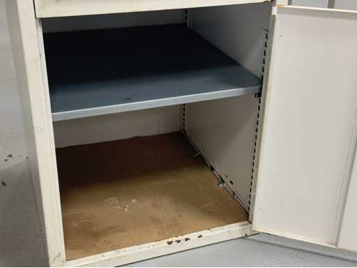 Description Dimensions respectivement um 1500 x 700 x 860 et 2000 x 700 x 2220 mm En partie avec paroi arrière perforée et éclairage. Pour plus de détails, voir les photos des plaques signalétiques.