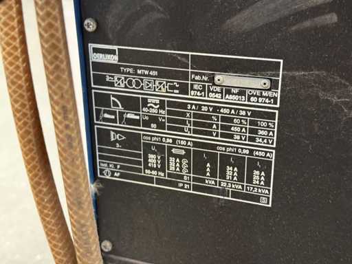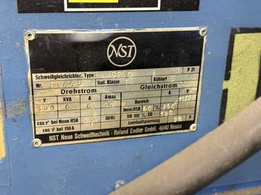 Marque OERLIKON, TYPE MTW451, puissance maximale 450 A, marque NST, type : MS250, pour plus de détails voir photos de la plaque nominative, numéro d’inventaire 63614